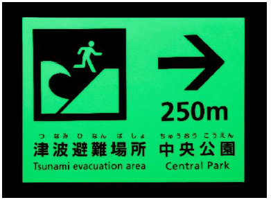津波による人的被害を低減するためには、緊急時に、地域住民のみならず、観光客等も安全な場所へ素早く避難できることが重要です。そこで、津波危険地帯における現在地の海抜や避難場所の方角・距離など、迅速な避難を可能とする情報を、共通の標識として設置するため、標識に記載する情報に関するルールを定めた、津波避難誘導標識システムに関する JIS を制定いたしました。