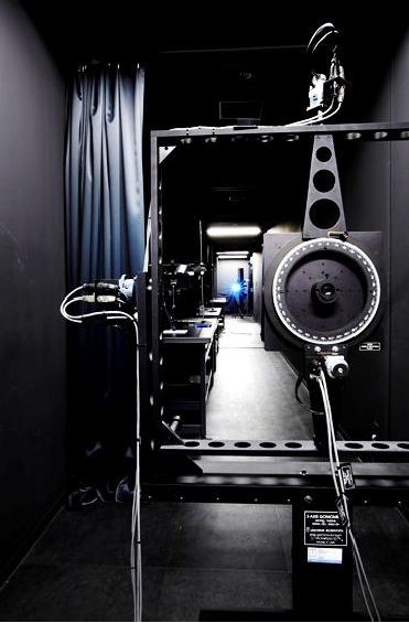 再帰性反射素材の測定は、まず15m以上の暗室を有していないと試験ができないことが特徴となっていて、さらに先程の記述の通りレインフォール試験を含む耐久試験後の再帰性反射材の性能試験が定められています。-20℃環境での低温曲げ試験とか +50℃から -20℃に環境を変える温度変化による耐性試験などもあり、なかなか繊維関連の試験では見られないものとなっています。