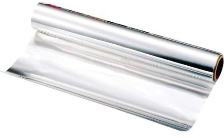 “アルミ箔”というのは、アルミニウムの塊をロールで挟んで延伸して薄くしたもののことです。料理などで使うアルミホイルをイメージしてもらえば分かりやすいと思います。“箔”というのは本来、金や銀などの金属を叩き延ばしたもののことでつなぎ目のない一枚ものですので、遮光・遮湿・防水などが可能になります。熱伝導性も高いのでうどん鍋や簡易コンロなどにも使われています。