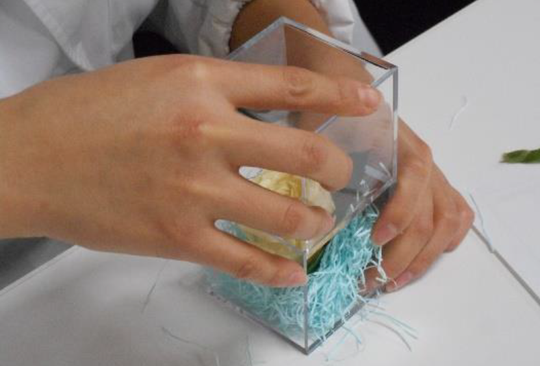 アクリルケースのふたをして、はみ出しているペーパーパッキンを整えて完成です