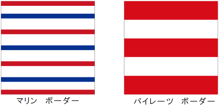 この夏に流行するといわれているマリンボーダー(基本的には白地ラインに細いカラーライン)やパイレーツボーダー(基本的には等間隔の太目の2色ライン)などは船乗りが甲板で見つけられやすいように考えられているので、目立つように色のコントラスト差が大きいものが好まれていたようです。
