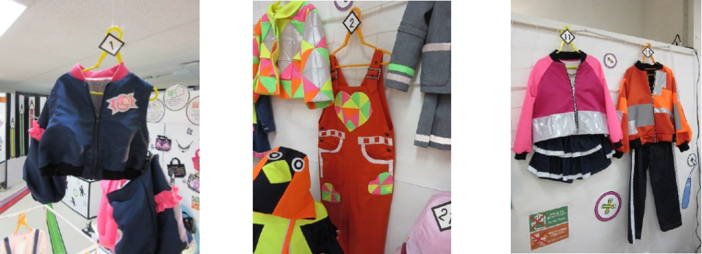 内容はと言いますと、ファッション性のある子ども服に高視認性機能を取り入れた作品を生徒さんたちが企画・デザイン・制作したものをコンテスト形式で発表会を行ったということなのです。