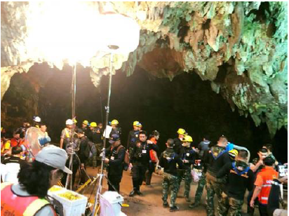 世界的なニュースとなっていた、タイ王国のチェンライ県にあるタムルアン洞窟に閉じ込められていた少年たち 13人が無事救出されました。6月23日に不明となってから7月2日に全員の無事が確認されるまでと、7月10日に救出完了まで18日間時間的なことや救援物資を運んだプロ級のダイバーですら犠牲になったことを 考えれば、奇跡的な救出活動であったと報道されていました。そんな救出活動に日本の蓄光タイルが有効に活用されたというアナウンスが届きました。