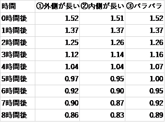 この実験では、どちらも同じ。