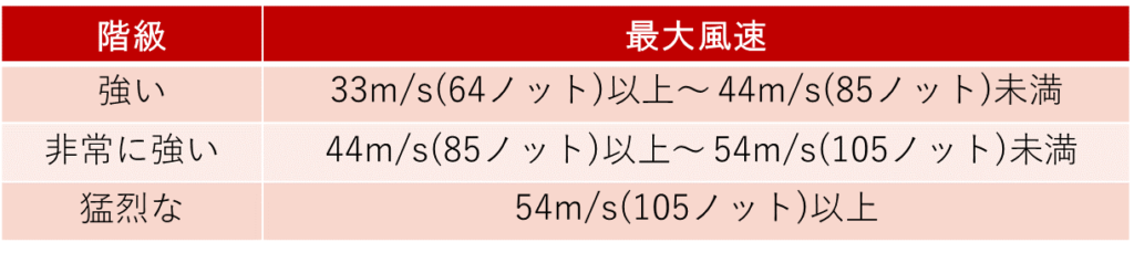 今回のような「超大型の非常に強い台風」という表現は、最大風速が 44m/s~ 54m/sで半径 800kmの暴風域を伴っていることを示しているのです。“超大型”はとんでもない勢力ということになります。