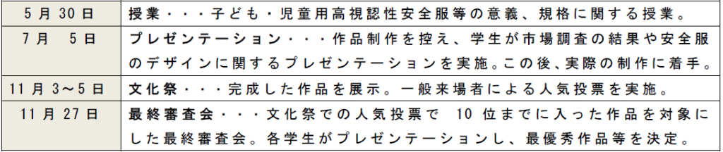 タイトルだけだと何の審査会か分かりませんが、文化服装学院とニッセンケンがコラボして取り組んでいる、高視認性の子ども服を学生さんたちがチームを組んでコンセプトやデザインを考えて製品まで制作するという内容になっています。