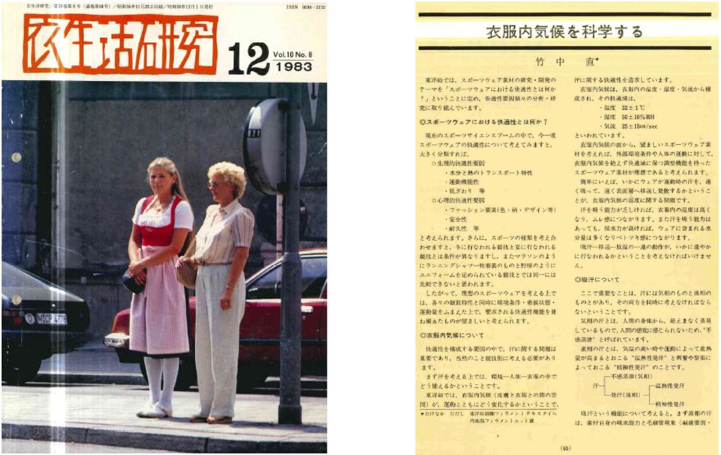 「衣生活研究」表紙と「衣服内気候を科学する」1ページ目