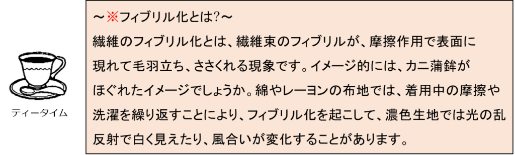 ② 麻・絹、レーヨン・リヨセルの白化(フィブリル化)