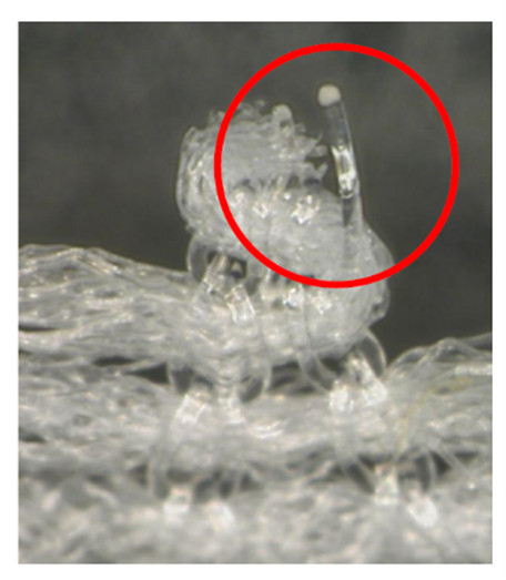 (モノフィラメント糸は、肌に接触が想定される場合、使用禁止する)