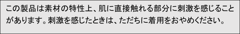 物理刺激とは衣類と皮膚との接触や圧迫などにより、密着した部分にちくちく感を覚え、かゆみやかぶれが生じることをいい、着用をやめれば症状は改善します。また、鋭利なものや硬いものとの摩擦による裂傷なども含まれます。その原因としては、モノフィラメント糸、衣類の構造(圧迫)、ボタンやファスナーなどの付属やネーム類の“バリ”などが挙げられます。