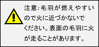 ・表面フラッシュが起こりやすい商品には、綿ニットの表起毛品、表パイルなどを使用したトレーナーやパジャマなどがある。要は、燃えやすい綿繊維などの周りに