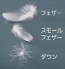 | 羽毛 | ![]() ダウンボールの混合率が羽毛製品の暖かさやかさ高さの目安になる |
