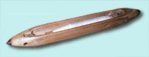 | レピア織機 | レピアとは剣のこと。剣先のつかみがよこ糸を保持して、往復移動で、緯糸を送っている |