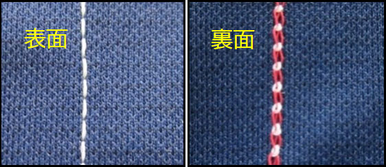 図12 偏平縫いの一例(2本針片面飾り縫い)