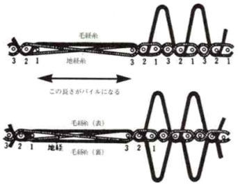 | 1 | コーデュロイ (コール天) | ![]() 図4. W型パイルの例4) ハードに使用されたり、スラックス用途ではV型が望ましいといえます。 |