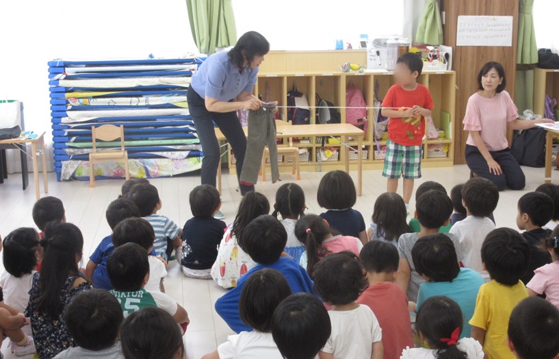 ■教育機関での講義や展示会などを通じた製品安全の普及啓発 / 大学などの教育機関での講義や、一般消費者向け情報展への出展、ラボの見学受け入れによって、安全な衣類の普及・教育活動を草の根レベルで展開している。特に、窒息や巻き込みの恐れがある子ども用衣料で使用されているひもについては、幼稚園・保育園を訪問して注意喚起するとともに、関連する安全規格を紹介する活動を継続的に行っていること。