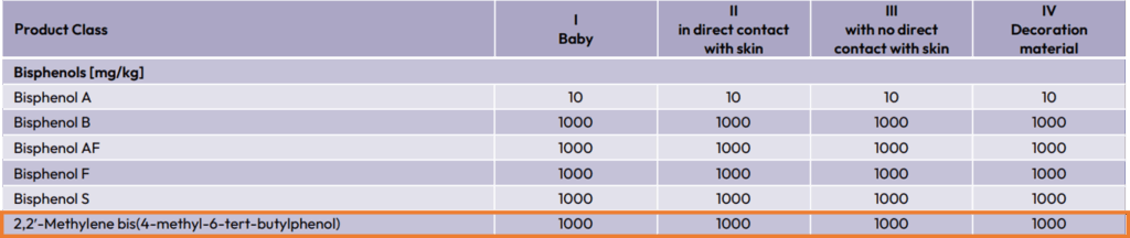 規制値:1,000 mg/kg (Annex4,6 全製品クラス共通)