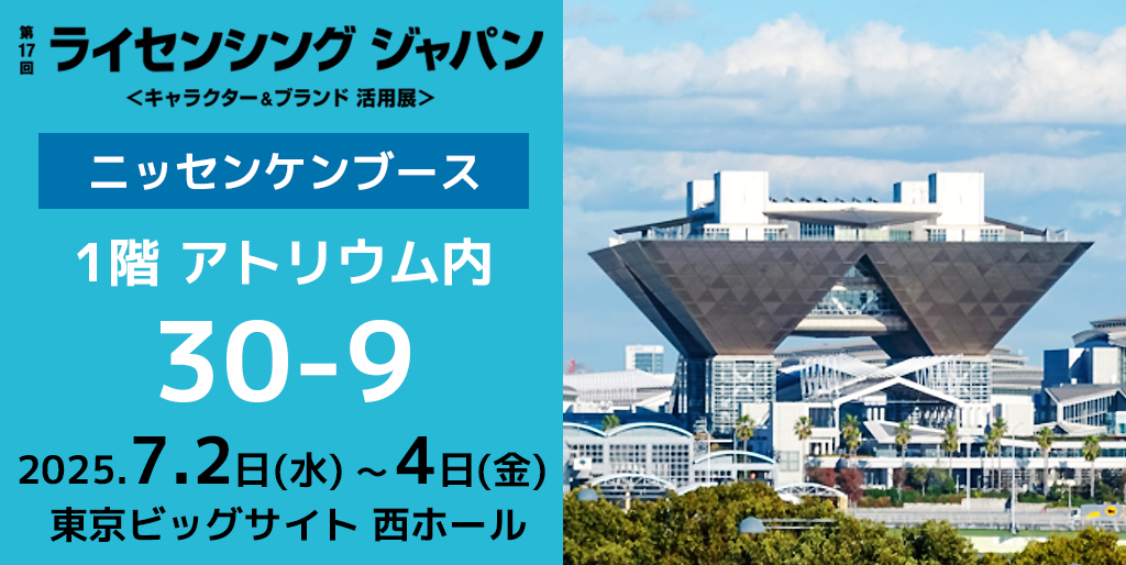 一般財団法人ニッセンケン品質評価センター 東京事業所は、2025 年7 月2 日(水)~4 日(金)の3 日間、東京ビッグサイトで開催される【CONTENT TOKYO コンテンツ東京】ライセンシング ジャパン展に出展します。同展は世界中のキャラクターやブランドが出展するもので、ライセンシーによる製品開発やコラボ等を検討している企業が多数来場します。ニッセンケンはこれら製品に対し、一段上の付加価値となる安全性・信頼性の確保を提案します。